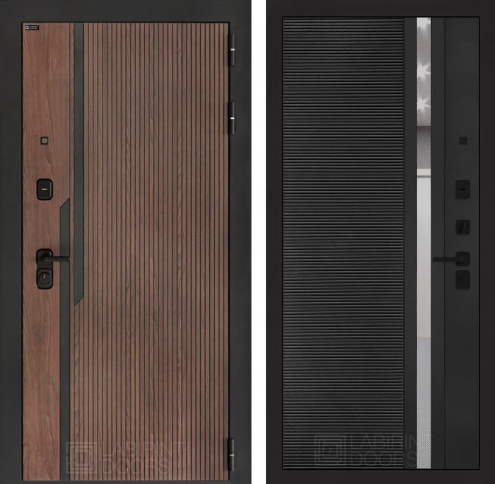 Входная дверь KARMINA 31 — Черный кварц, зеркальная вставка с тонировкой
