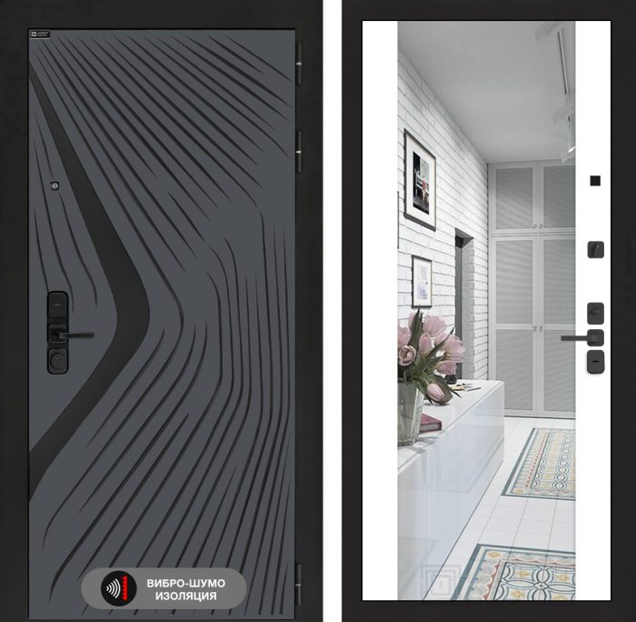 Входная дверь LEOLAB с Зеркалом 32 тонированным - Серый рельеф софт 58 300,00 ₽
