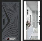 Отделка снаружи: Фрезерованная МДФ панель 10 мм, цвет «Velluto Oscuro» с патиной и вставкой из металла в цвет наличника