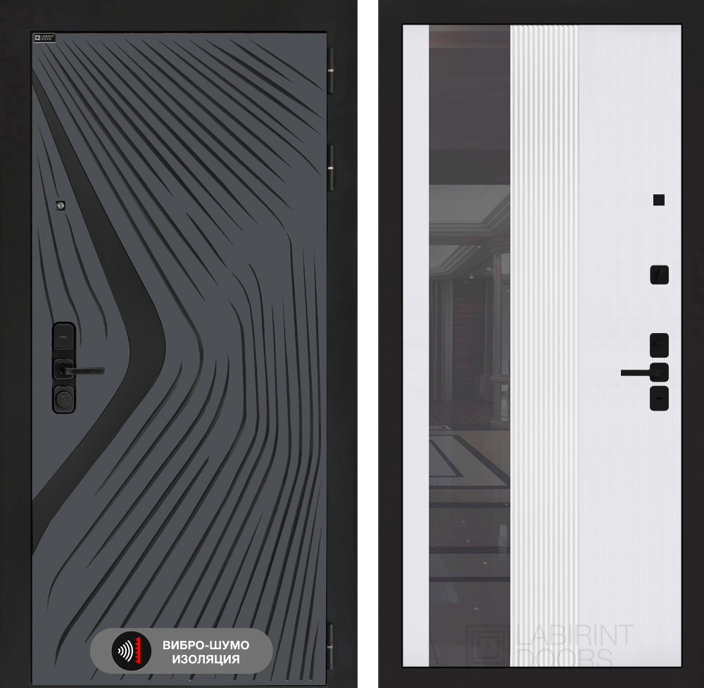Внутренняя отделка: Фрезерованная МДФ панель 10 мм с тонированным зеркалом (ширина 244 мм), цвет «Белый рельеф софт»