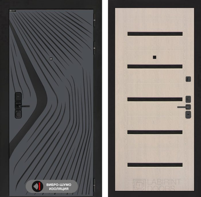 Входная дверь LEOLAB 01 — Беленый дуб, стекло черное