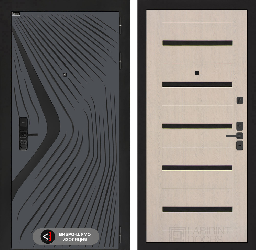 Отделка снаружи: Фрезерованная МДФ панель 10 мм, цвет «Velluto Oscuro» с патиной и вставкой из металла в цвет наличника
