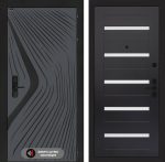 Отделка снаружи: Фрезерованная МДФ панель 10 мм, цвет «Velluto Oscuro» с патиной и вставкой из металла в цвет наличника