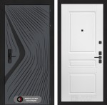 Отделка снаружи: Фрезерованная МДФ панель 10 мм, цвет «Velluto Oscuro» с патиной и вставкой из металла в цвет наличника