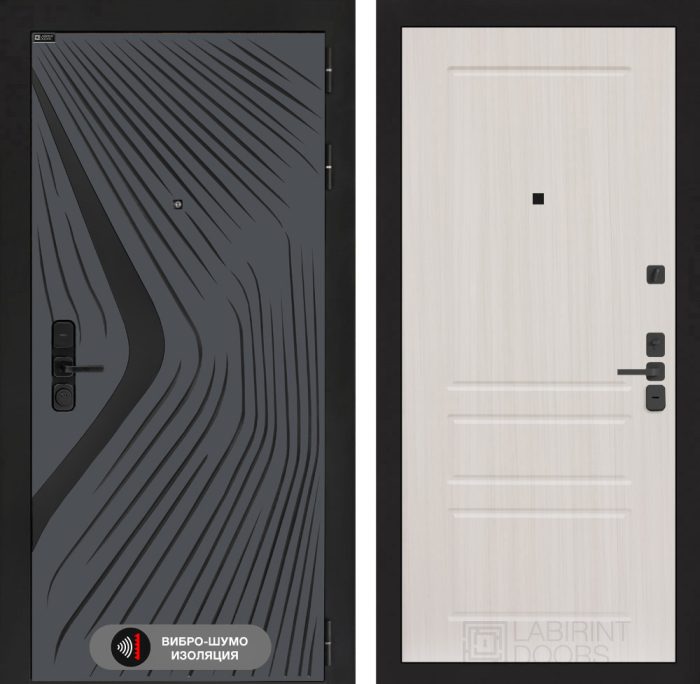 Отделка снаружи=’Фрезерованная МДФ панель 10 мм, цвет «Velluto Oscuro» с патиной и вставкой из металла в цвет наличника’
