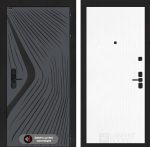 Отделка снаружи: Фрезерованная МДФ панель 10 мм, цвет «Velluto Oscuro» с патиной и вставкой из металла в цвет наличника