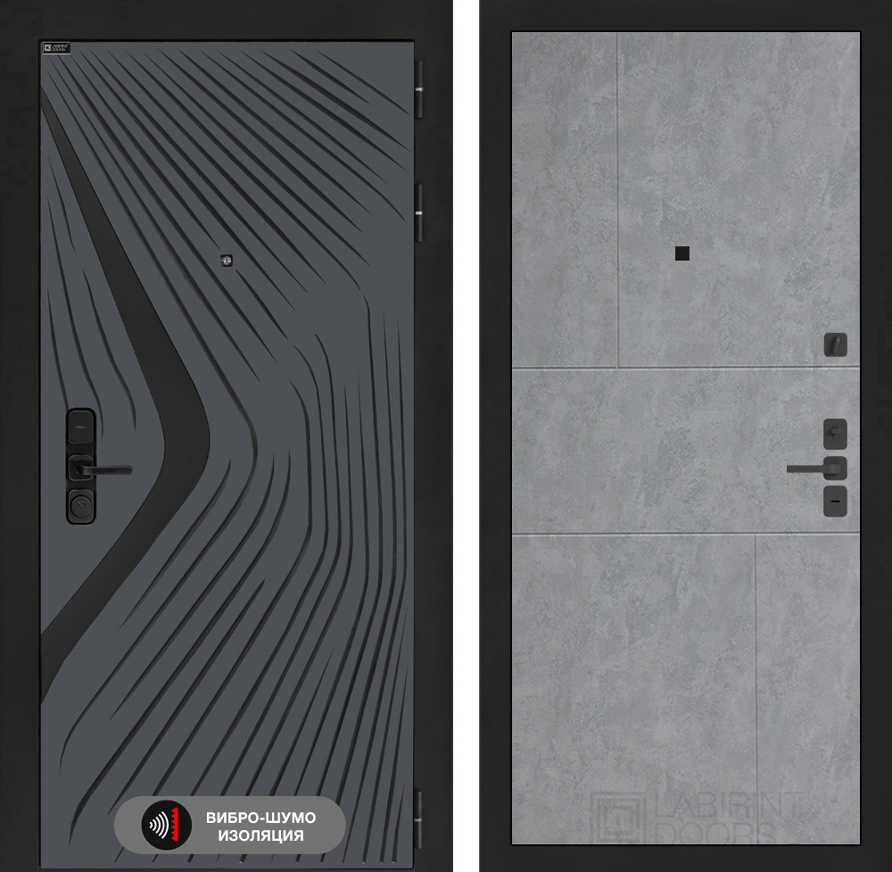 Отделка снаружи: Фрезерованная МДФ панель 10 мм, цвет «Velluto Oscuro» с патиной и вставкой из металла в цвет наличника