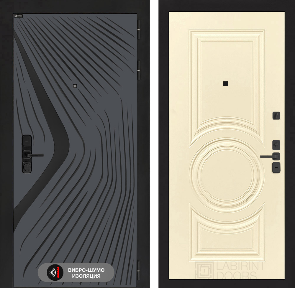Полный комплект: Фурнитура в черном цвете: Броненакладка врезная, накладка со шторкой, глазок , дверная ручка, ночная задвижка. Цилиндр ключ-вертушка (производитель не регламентируется), регулируемый эксцентрик.