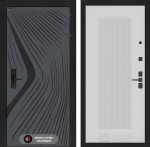 Отделка снаружи: Фрезерованная МДФ панель 10 мм, цвет «Velluto Oscuro» с патиной и вставкой из металла в цвет наличника