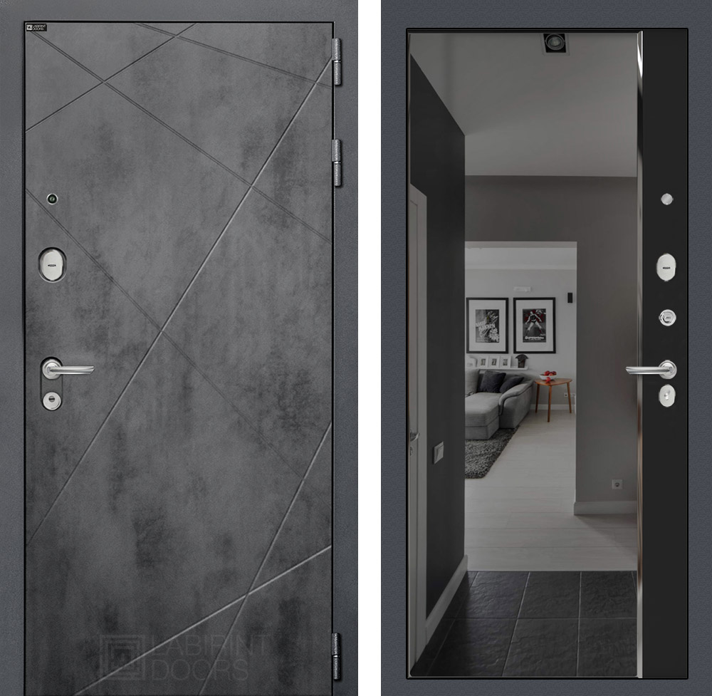 Отделка снаружи: Фрезерованная декоративная MDF панель 10 мм, цвет «Бетон темный» с металлическим наличником