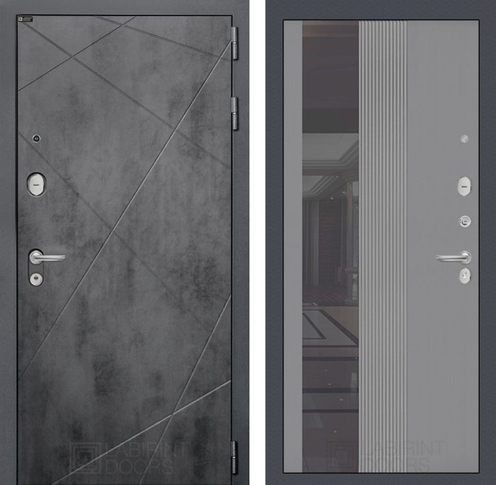 Главная Двери комфорт LOFT Входная дверь LOFT с Зеркалом 32 тонированным — Серый рельеф софт