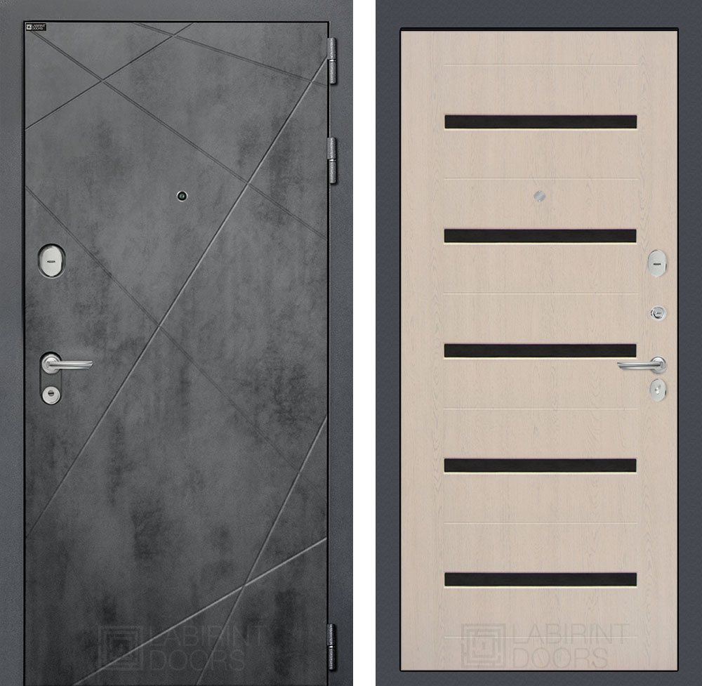 Отделка снаружи: Фрезерованная декоративная MDF панель 10 мм, цвет «Бетон темный» с металлическим наличником