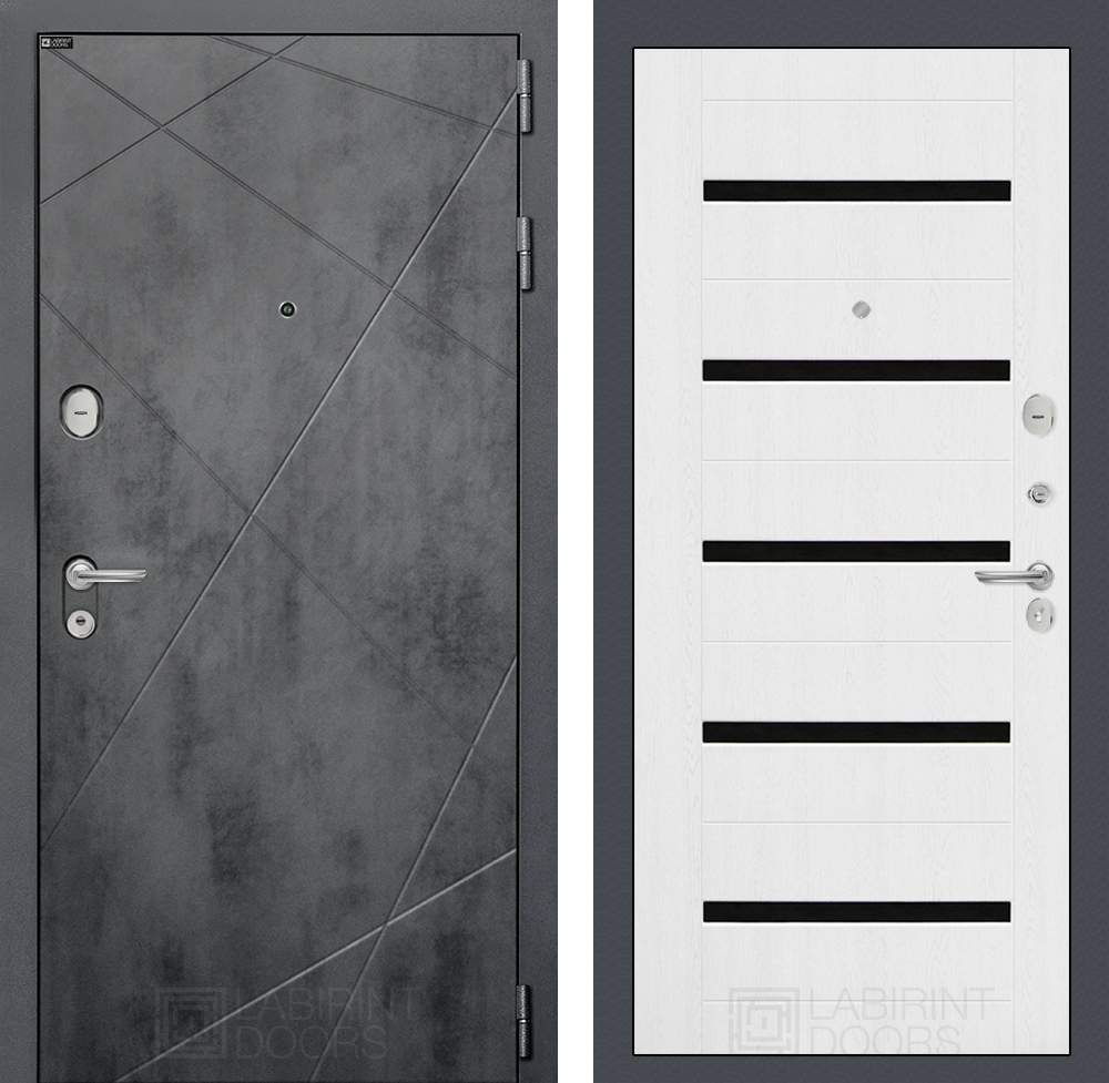 Отделка снаружи: Фрезерованная декоративная MDF панель 10 мм, цвет «Бетон темный» с металлическим наличником