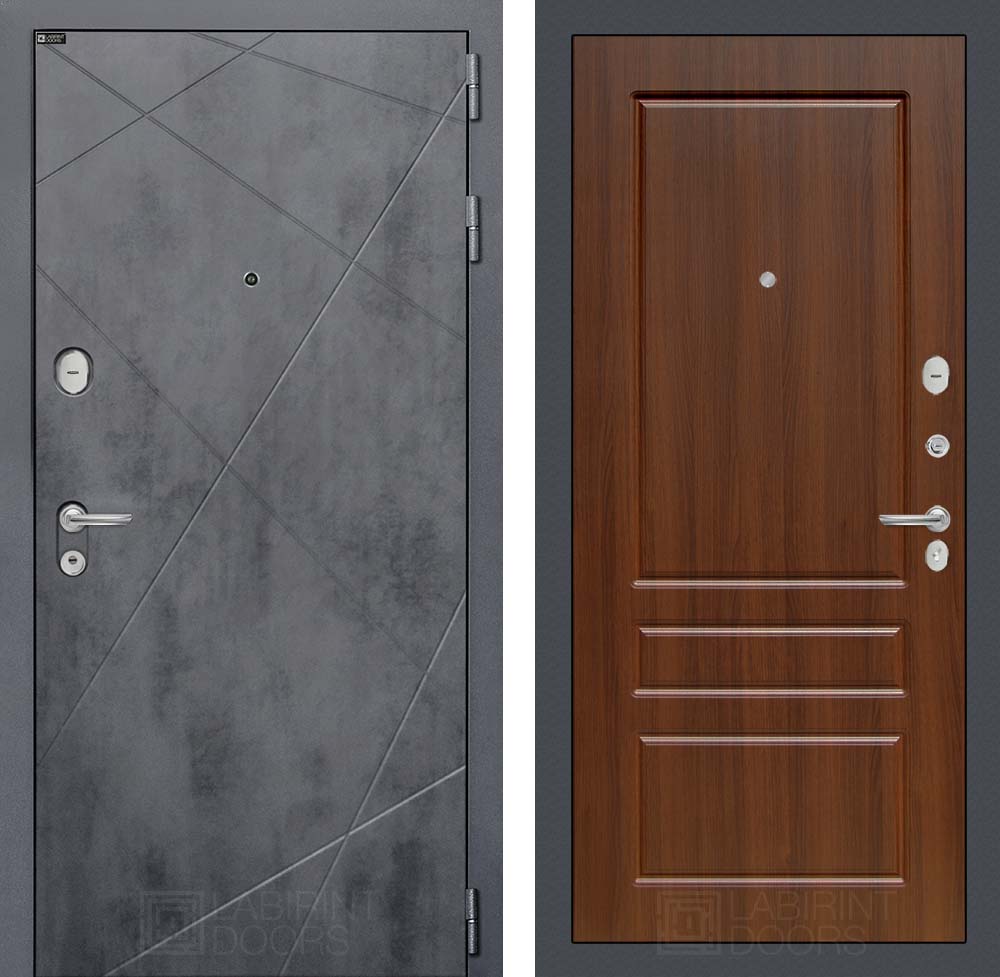Отделка снаружи: Фрезерованная декоративная MDF панель 10 мм, цвет «Бетон темный» с металлическим наличником