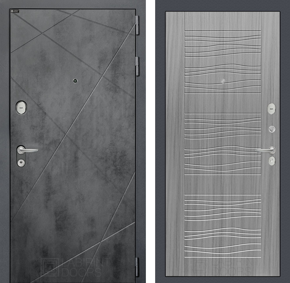 Отделка снаружи: Фрезерованная декоративная MDF панель 10 мм, цвет «Бетон темный» с металлическим наличником