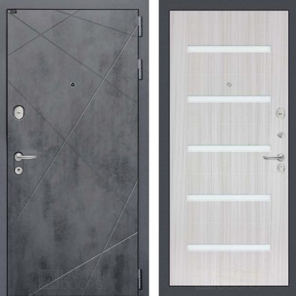 Отделка снаружи: Фрезерованная декоративная MDF панель 10 мм, цвет «Бетон темный» с металлическим наличником