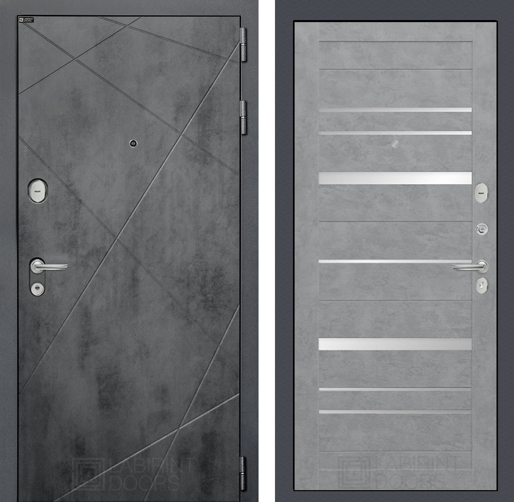 Отделка снаружи: Фрезерованная декоративная MDF панель 10 мм, цвет «Бетон темный» с металлическим наличником