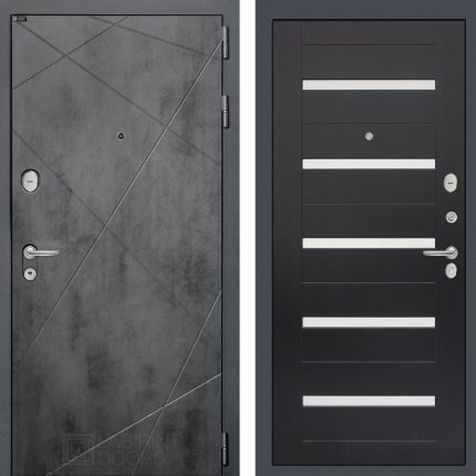Отделка снаружи: Фрезерованная декоративная MDF панель 10 мм, цвет «Бетон темный» с металлическим наличником