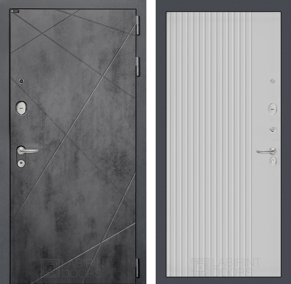 Отделка снаружи: Фрезерованная декоративная MDF панель 10 мм, цвет «Бетон темный» с металлическим наличником