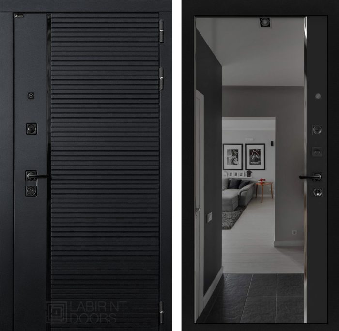 Отделка снаружи=’Декоративная MDF панель 10 мм с наличниками, цвет «Черный кварц», вставка черный молдинг’