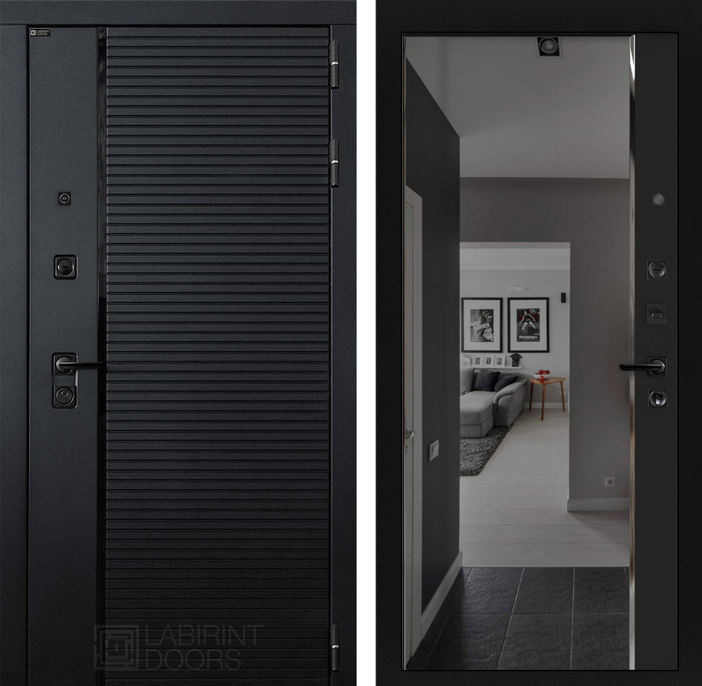 Главная Двери в квартиру PIANO Входная дверь PIANO с зеркалом Панорама с тонировкой — Черный кварц