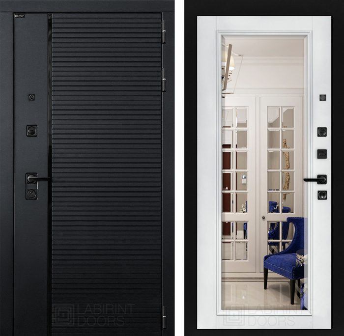 Входная дверь PIANO с Зеркалом Фацет — Белый софт
