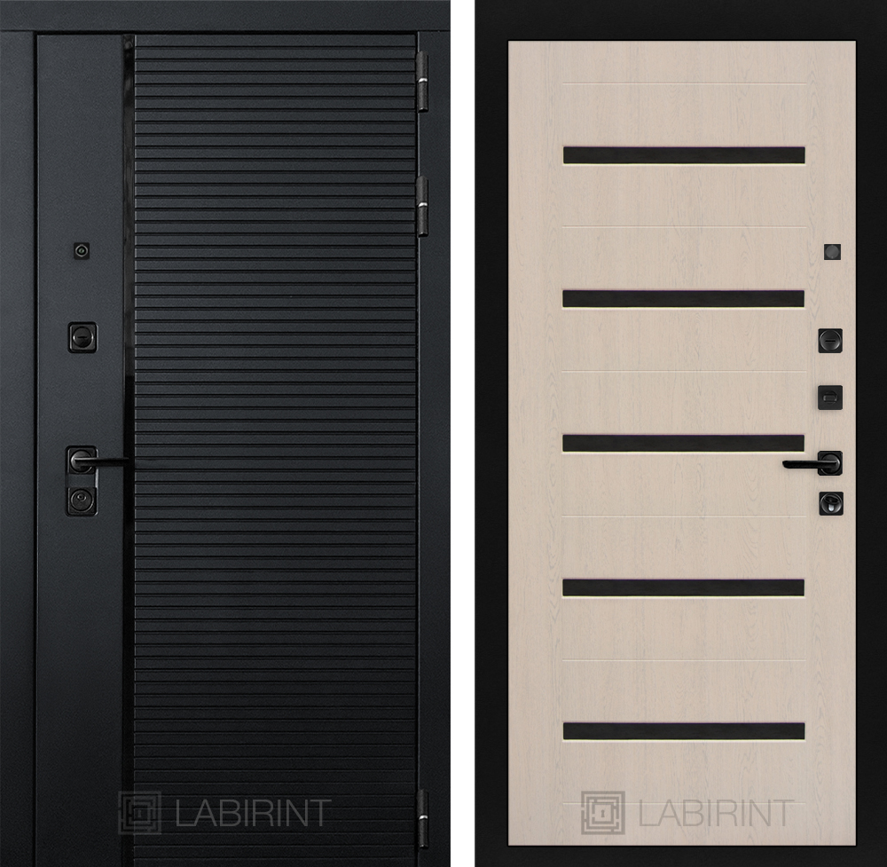Отделка снаружи: Декоративная MDF панель 10 мм с наличниками, цвет «Черный кварц», вставка черный молдинг