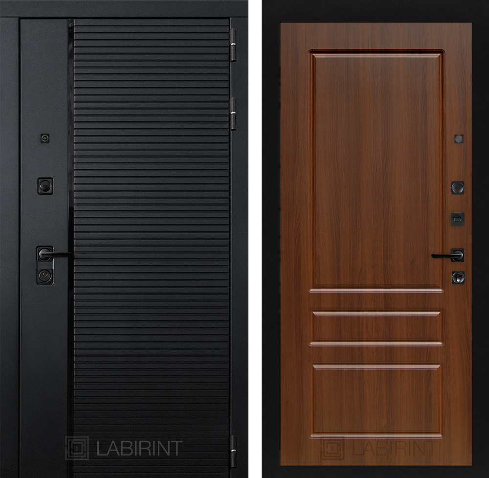 Полный комплект: Фурнитура в черном цвете: Броненакладка врезная, накладка со шторкой, глазок , дверная ручка, ночная задвижка. Цилиндр ключ-вертушка (производитель не регламентируется), регулируемый эксцентрик.’
