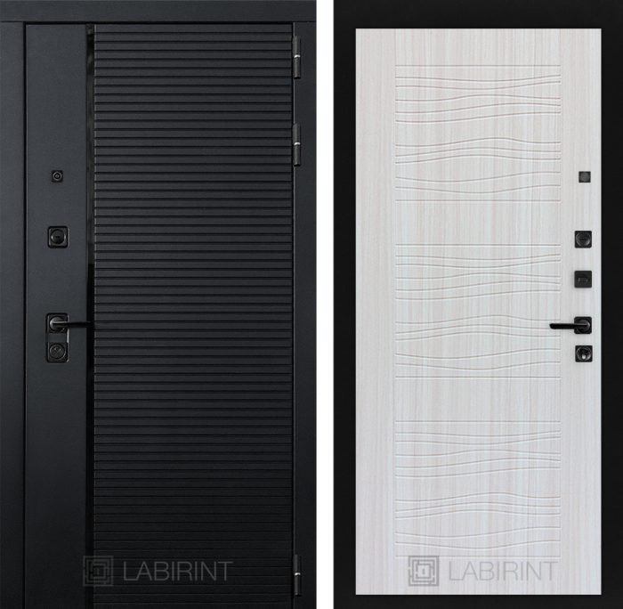 Входная дверь PIANO 01 — Беленый дуб, стекло черное