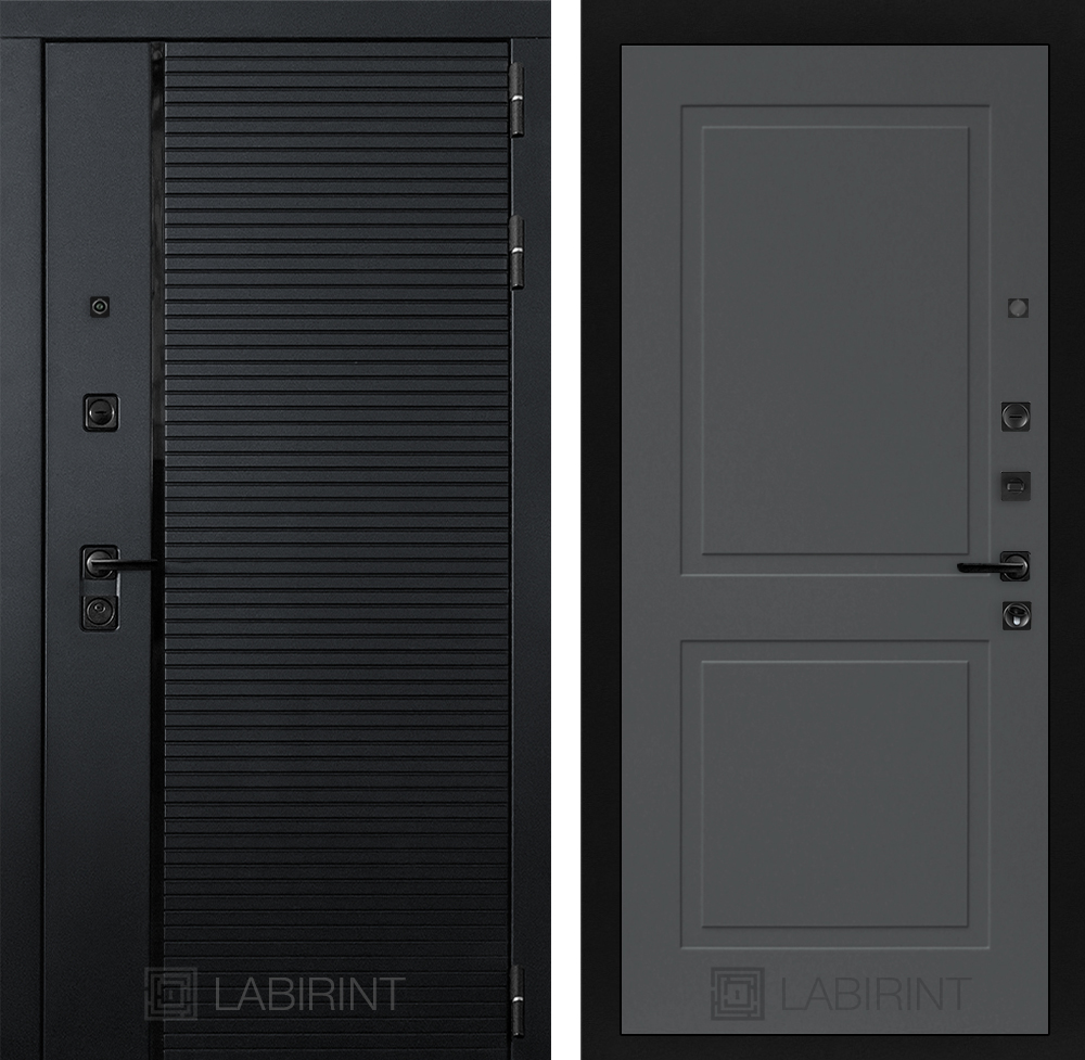 Отделка снаружи: Декоративная MDF панель 10 мм с наличниками, цвет «Черный кварц», вставка черный молдинг