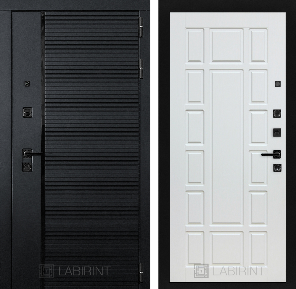 Полный комплект: Фурнитура в черном цвете: Броненакладка врезная, накладка со шторкой, глазок , дверная ручка, ночная задвижка. Цилиндр ключ-вертушка (производитель не регламентируется), регулируемый эксцентрик.’