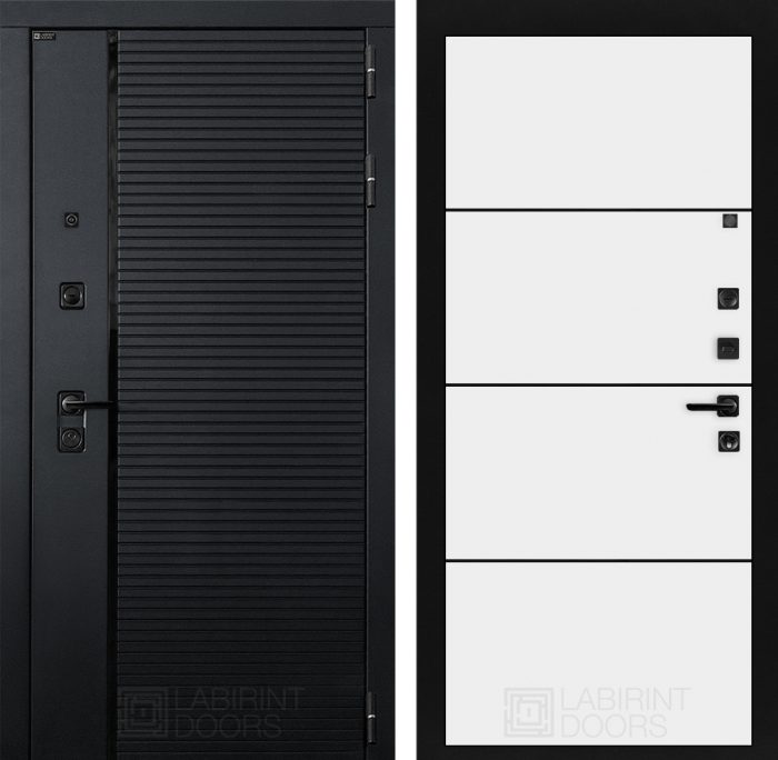Входная дверь PIANO 25 — Белый софт, черный молдинг