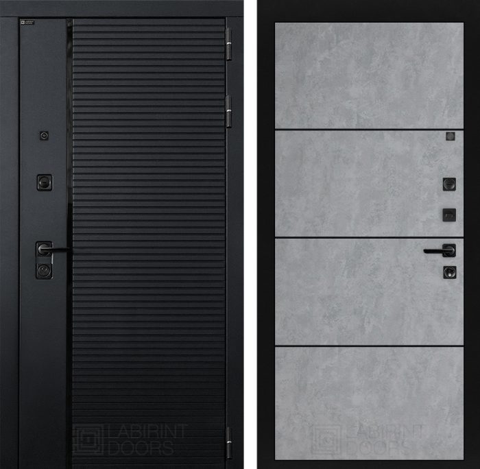 Входная дверь PIANO 25 — Бетон светлый, черный молдинг