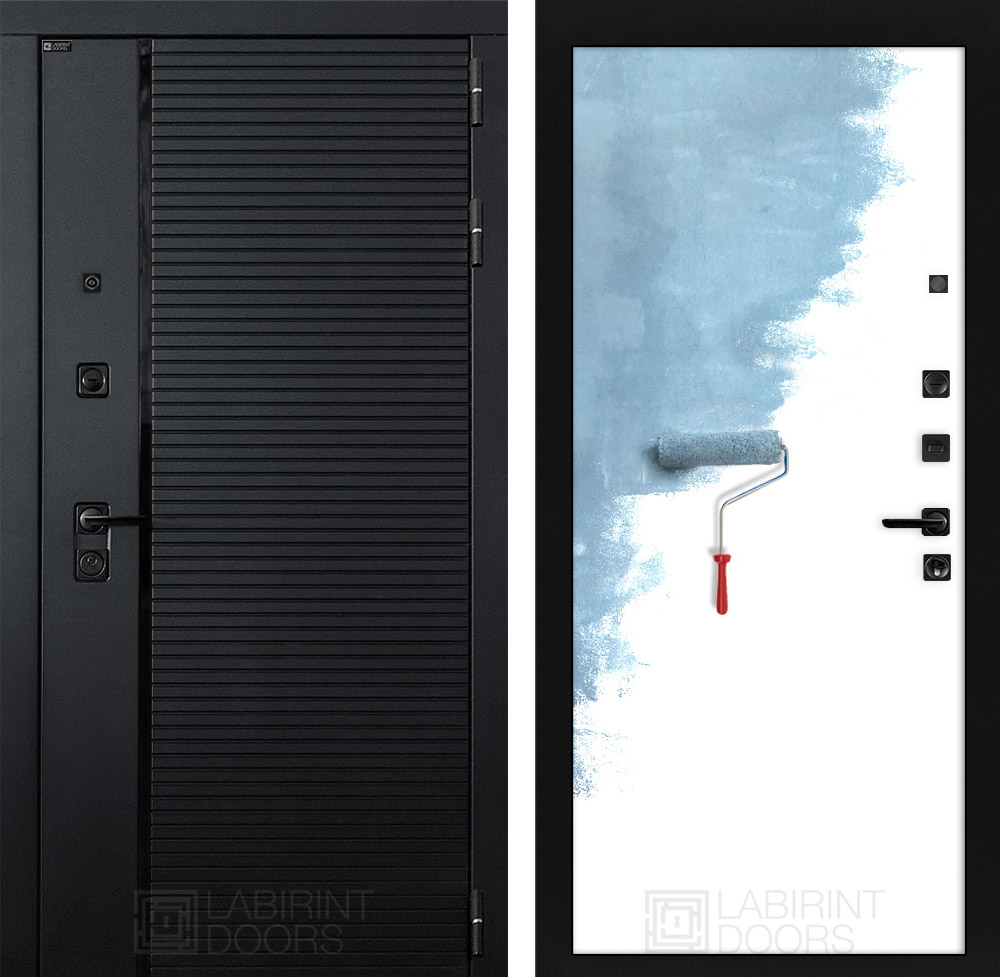 Отделка снаружи: Декоративная MDF панель 10 мм с наличниками, цвет «Черный кварц», вставка черный молдинг