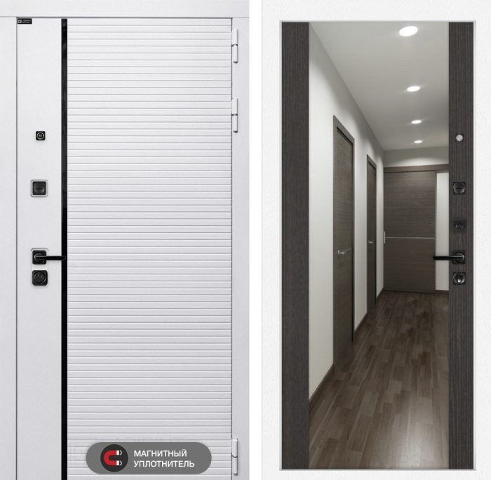 Отделка снаружи=’Современная MDF панель 10 мм с наличником, цвет «Лофт белый», вставка черный молдинг’