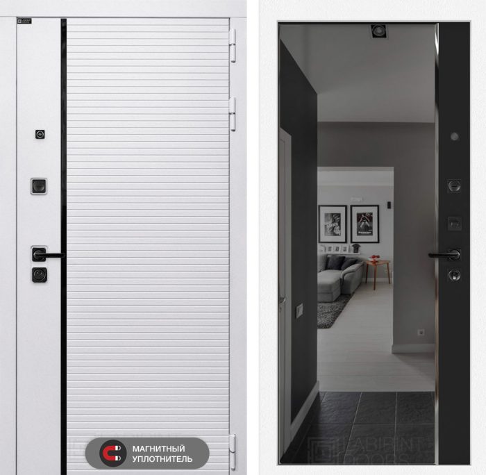 Отделка снаружи=’Современная MDF панель 10 мм с наличником, цвет «Лофт белый», вставка черный молдинг’