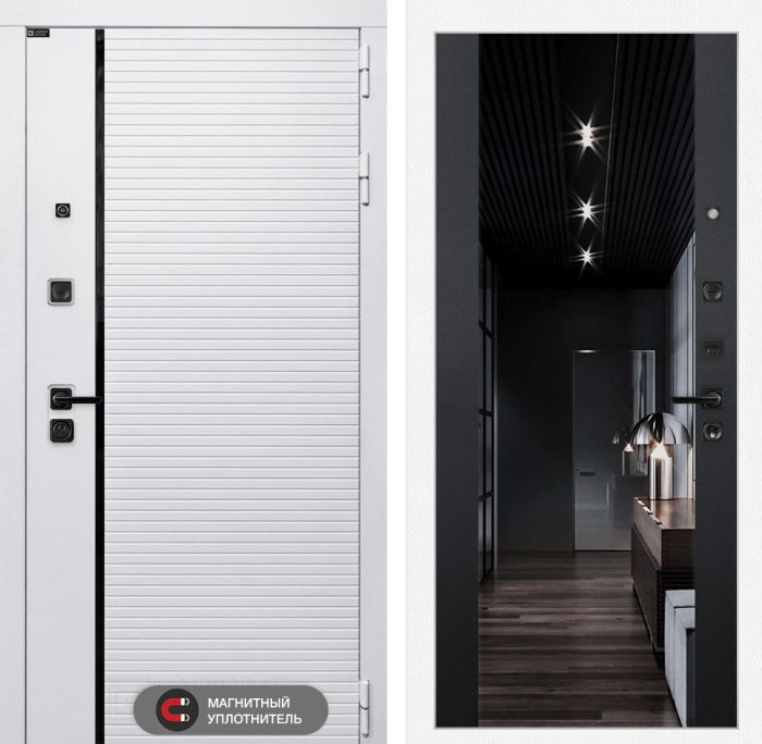 Отделка снаружи=’Современная MDF панель 10 мм с наличником, цвет «Лофт белый», вставка черный молдинг’