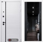 Отделка снаружи: Современная MDF панель 10 мм с наличником, цвет «Лофт белый», вставка черный молдинг