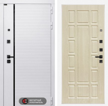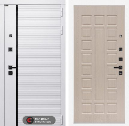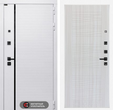 Отделка снаружи=’Современная MDF панель 10 мм с наличником, цвет «Лофт белый», вставка черный молдинг’