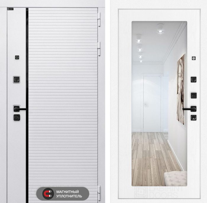 Входная дверь ROYAL с Зеркалом 18 — Белое дерево