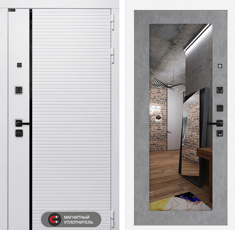 Отделка снаружи: Современная MDF панель 10 мм с наличником, цвет «Лофт белый», вставка черный молдинг