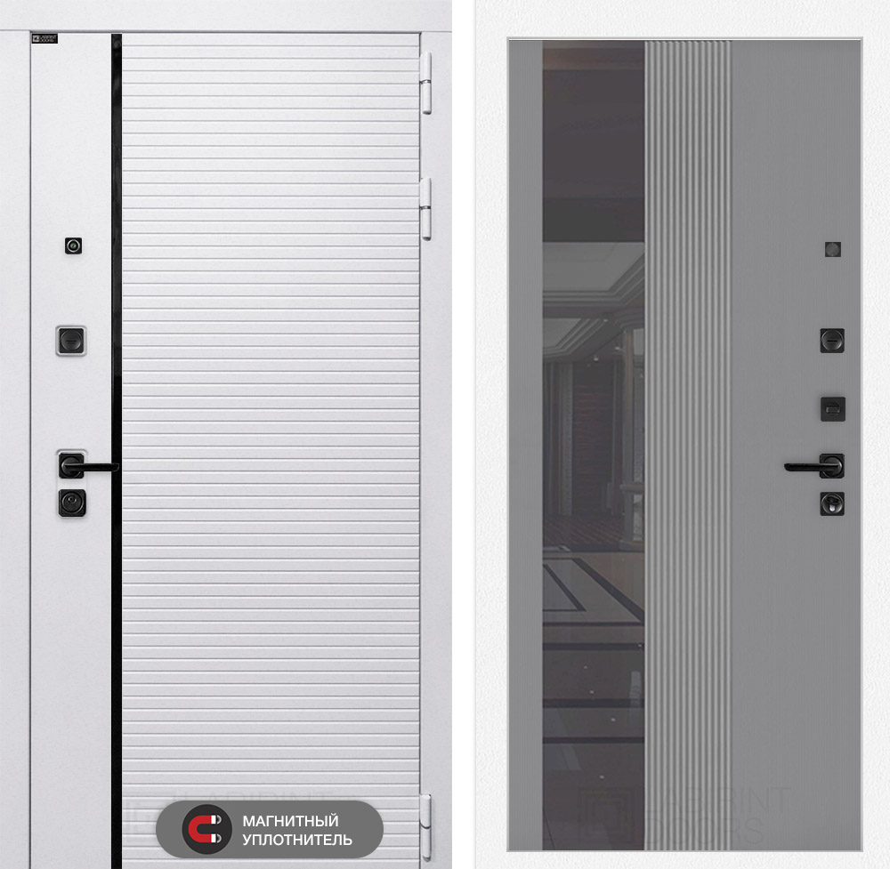 Отделка снаружи: Современная MDF панель 10 мм с наличником, цвет «Лофт белый», вставка черный молдинг