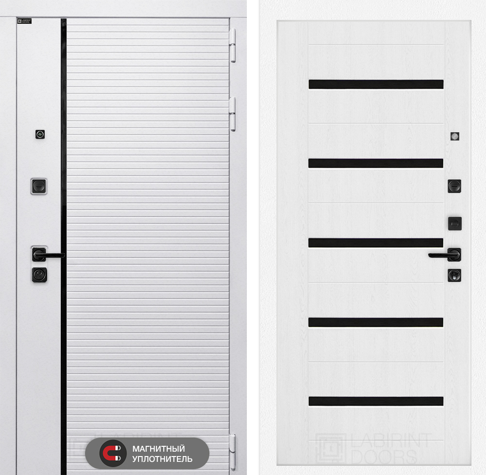 Отделка снаружи: Современная MDF панель 10 мм с наличником, цвет «Лофт белый», вставка черный молдинг