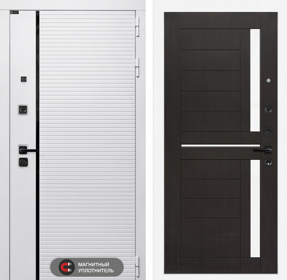 Отделка снаружи: Современная MDF панель 10 мм с наличником, цвет «Лофт белый», вставка черный молдинг