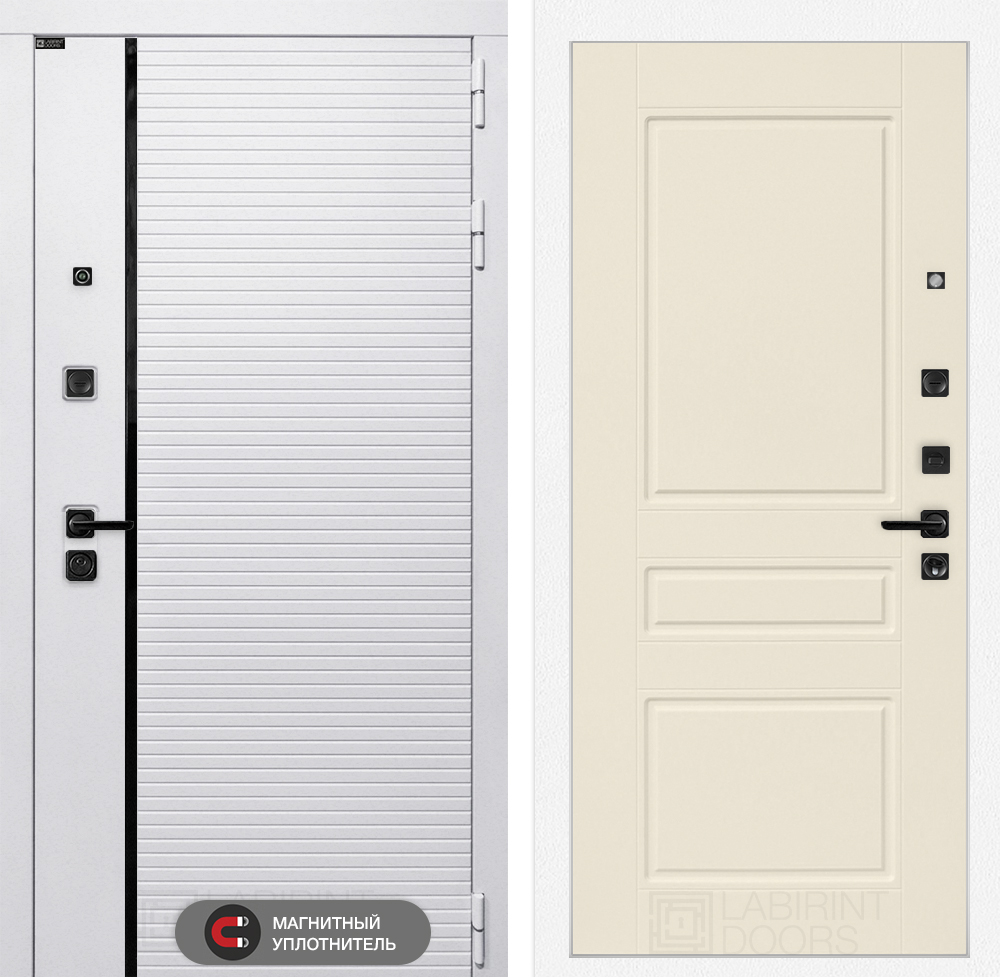 Отделка снаружи: Современная MDF панель 10 мм с наличником, цвет «Лофт белый», вставка черный молдинг