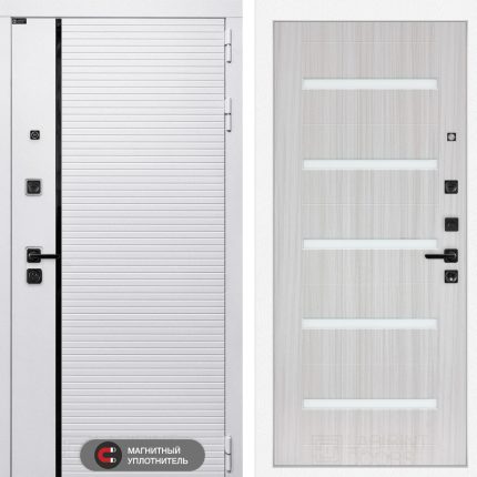 Отделка снаружи: Современная MDF панель 10 мм с наличником, цвет «Лофт белый», вставка черный молдинг
