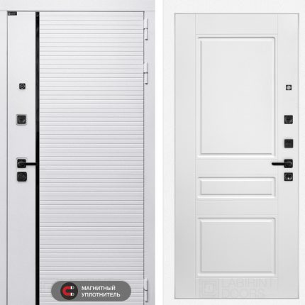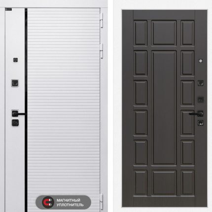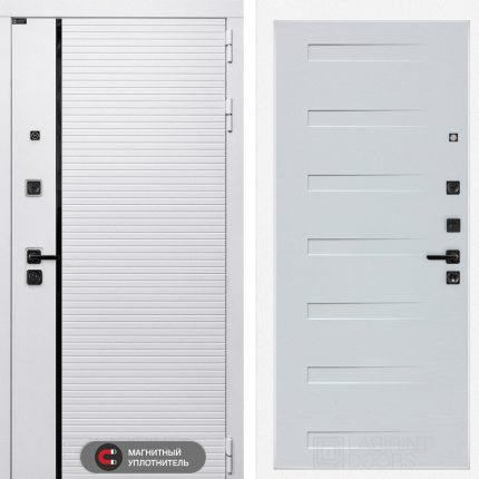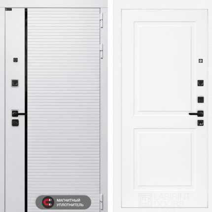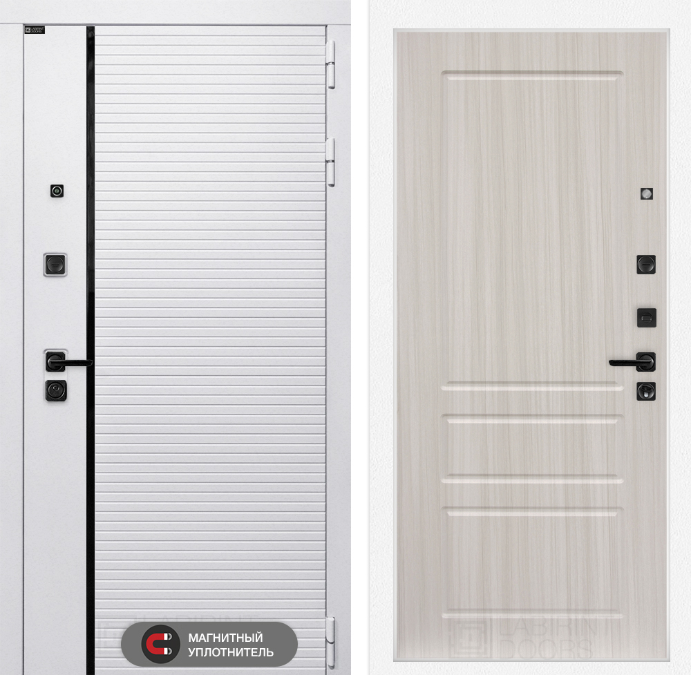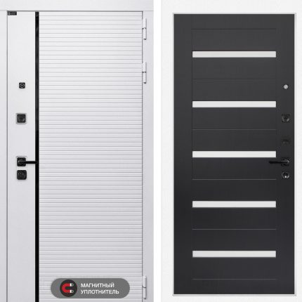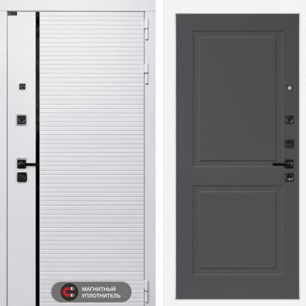 Отделка снаружи: Современная MDF панель 10 мм с наличником, цвет «Лофт белый», вставка черный молдинг