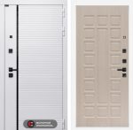 Отделка снаружи: Современная MDF панель 10 мм с наличником, цвет «Лофт белый», вставка черный молдинг