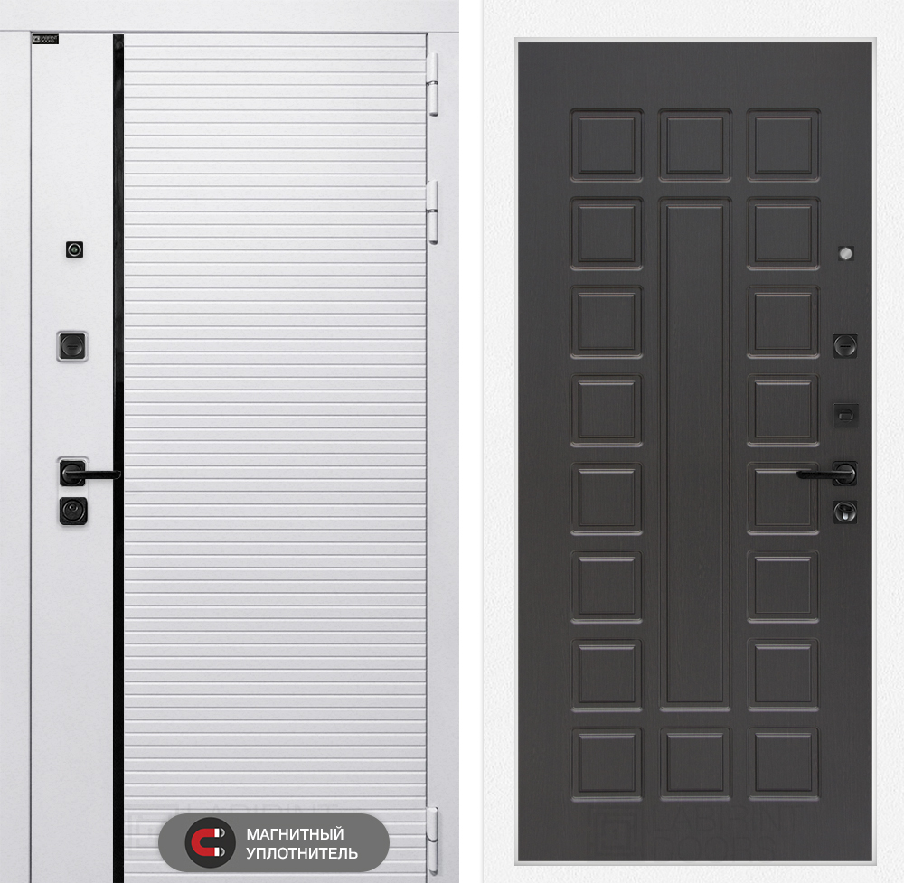 Отделка снаружи: Современная MDF панель 10 мм с наличником, цвет «Лофт белый», вставка черный молдинг
