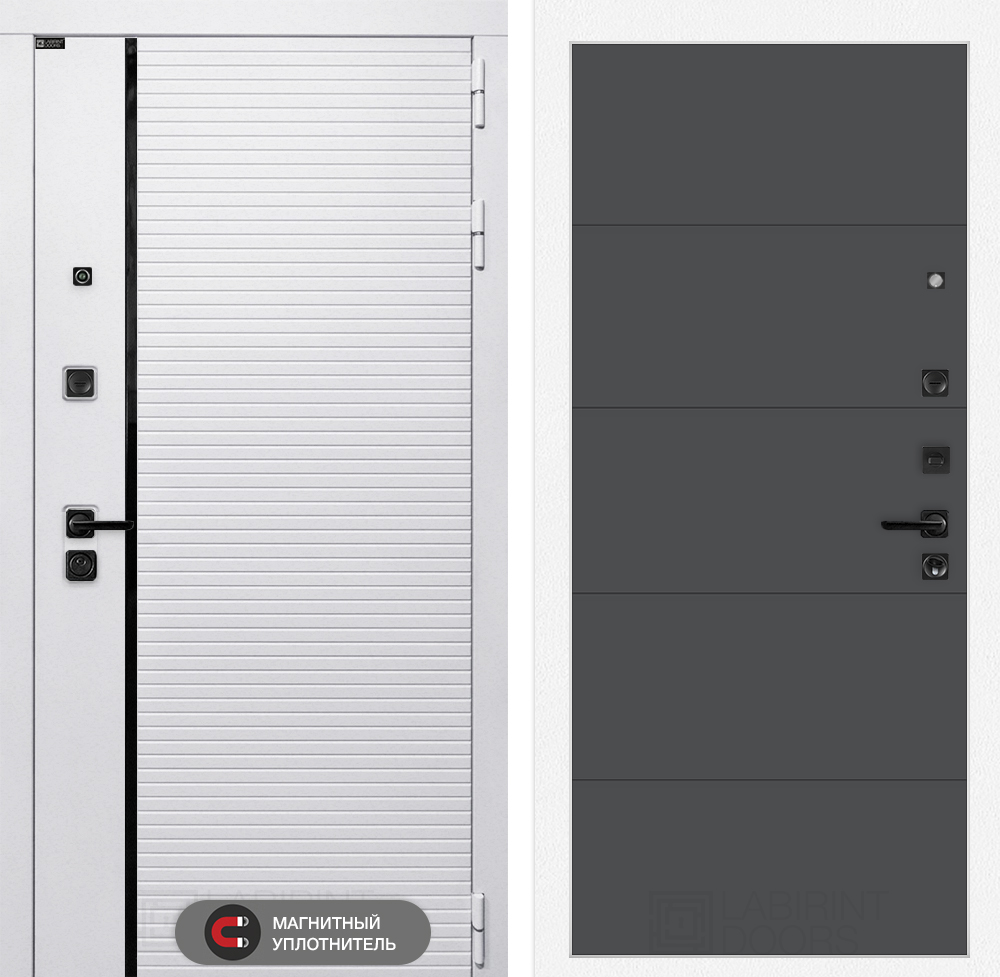 Отделка снаружи: Современная MDF панель 10 мм с наличником, цвет «Лофт белый», вставка черный молдинг